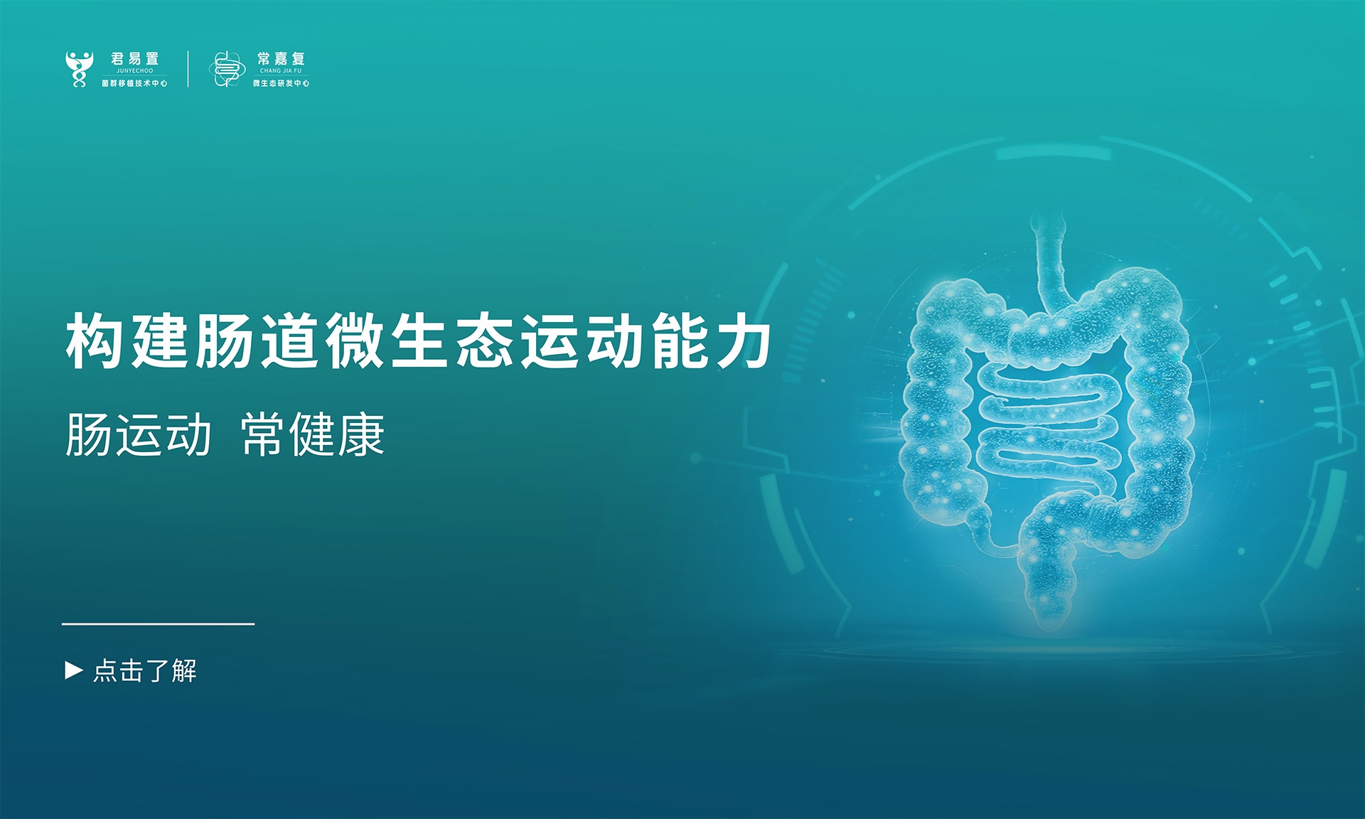 君易置生物科技是一家集臨床和基礎(chǔ)研究、S·FMT?運動菌群移植技術(shù)服務及微生態(tài)產(chǎn)品和方案研發(fā)為一體,專注于人體腸道微生態(tài)能力建設和個性化康復的高新技術(shù)企業(yè) 。公司秉承“腸運動,常健康”的核心理念,以“運動菌群 舒暢·輕盈”為研發(fā)邏輯,嚴選具有“運動菌群特征”的優(yōu)秀供體,研發(fā)調(diào)配促進菌群定植的定植伴侶,致力于通過科學調(diào)配菌群定植配方,提升患者的腸道微生態(tài)運動能力,實現(xiàn)疾病預防與治療。